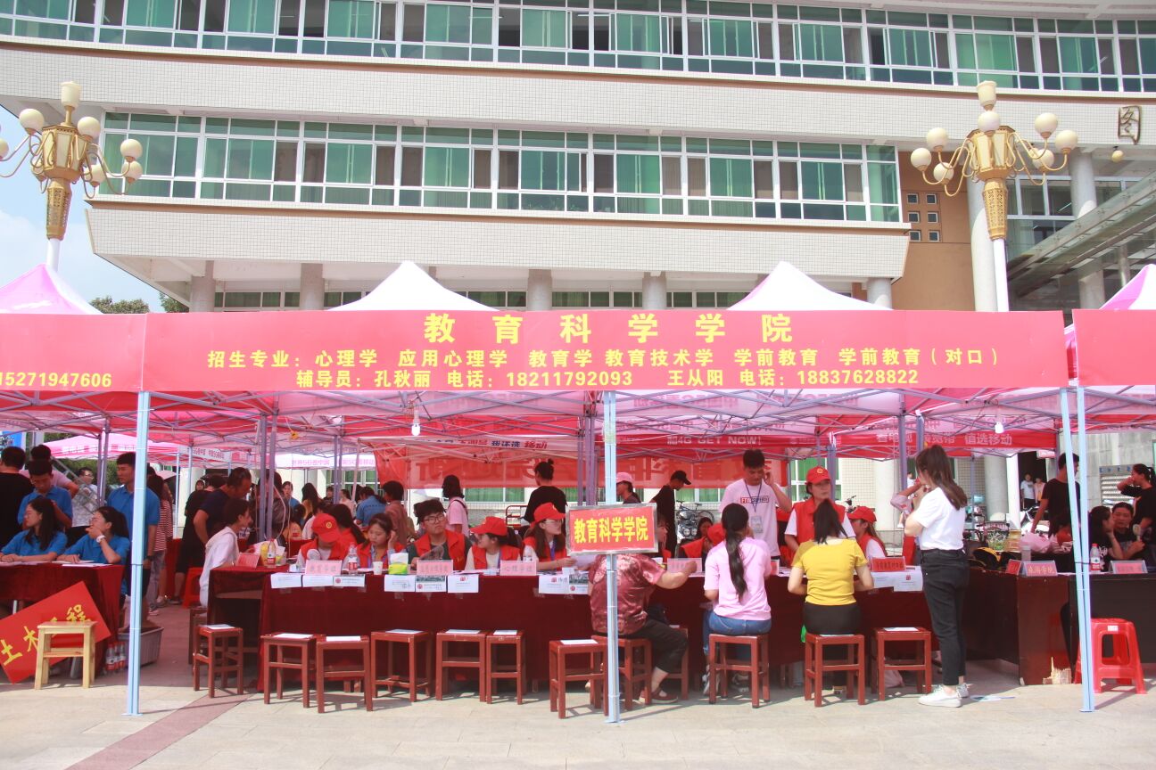 金秋九月,喜迎新生。96日,信阳师范学院教育科学学院于本校新图书馆楼前展开迎接2019级新生工作。校党委书记宋争辉,院党委书记李辉、党委副书记李贵杰、思想政治与就业指导教研室副主任瞿浩、团委老师朱方、牛洁楠亲临迎新现场指导工作并向新生和工作者们表示慰问,2019级班主任王从阳、田园老师也在迎新现场迎接新同学的到来。