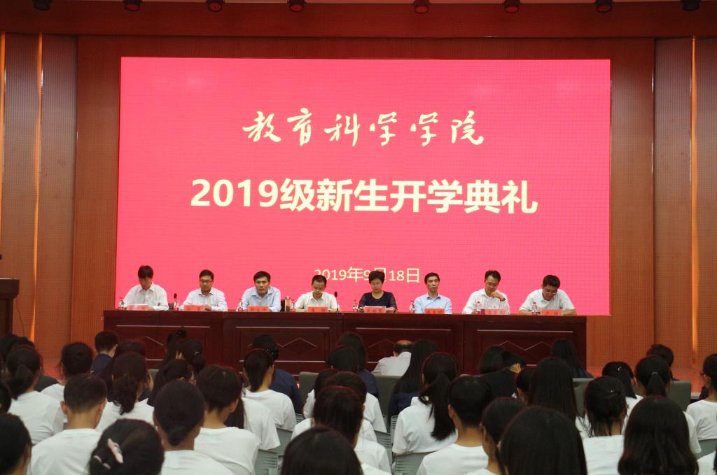 918日晚,信阳师范学院教育科学学院2019级新生开学典礼在逸夫楼报告厅隆重举行。院党委书记李辉,院长朱桂琴,课改所所长郑立坤,副院长陈天顺、郭勇,党委副书记李贵杰,院长助理岳鹏飞、卢强,各教研室老师以及2019级全体新生参加典礼。典礼由党委书记李辉主持。