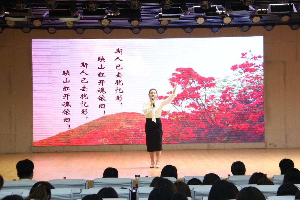 比赛中,选手们精神饱满,演讲铿锵有力,表现形式多种多样。《啼血的红杜鹃?讲述蒋曰英烈士慷慨牺牲的悲壮,提醒同学们永远铭记感恩先烈;?清澈的爱,只为中国?展现00后新兵陈祥榕为国捐躯的决绝,激励新时代青年忠于祖国,热爱祖国的热血情怀。中国共产党的百年艰辛血泪史通过一个个鲜活生动的故事展现出来,深刻感染着在场每一位学生。最终,综合现场评委的打分,《啼血的红杜鹃》荣获比赛一等奖,?清澈的爱,只为中国?、《为人民服务的路》荣获二等奖,《百年党史不忘初心》、?中国共产党颂?和《信念永恒》获得三等奖。