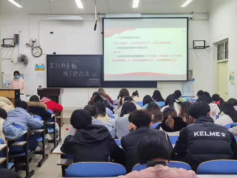 11月11日,教育科学学院73期青校成员在教科楼115教室开展第四次青校线下理论课,全体青校成员参与该课程,课程由2020级学前教育本科二班马珊珊主讲。