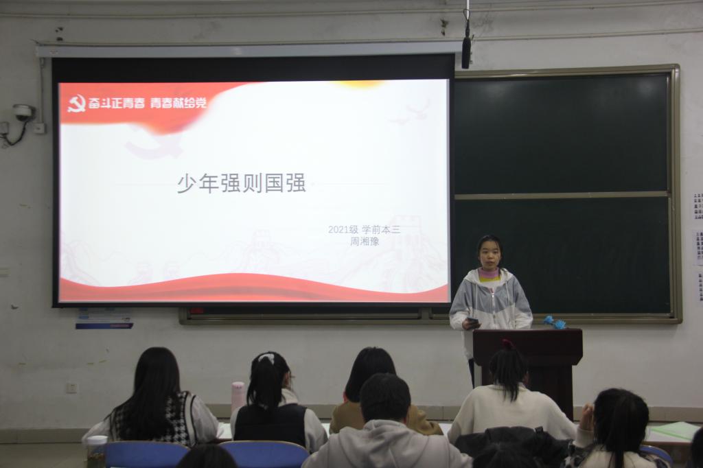 时间:2021-11-13 20:26:28 来源:教科院新闻部 作者:马玉娇 亓亚兴 阅读: 次为激发学生的爱党爱国精神,11月11日,教育科学学院在教科楼108教室举办“请党放心 强国有我”主题演讲比赛。比赛由2021级学前教育三班任雪珂、教育技术学班李阳阳主持。