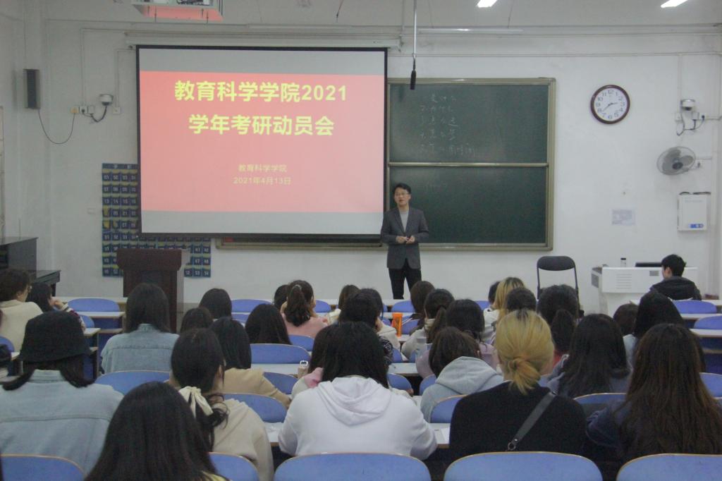 4月13日下午,教育科学学院于教科楼108教室开展2021年考研动员会。教育科学学院党委副书记李贵杰,团委老师朱方,2018级学前教育专业、教育学专业及教育技术学专业全体同学参加此次动员会。