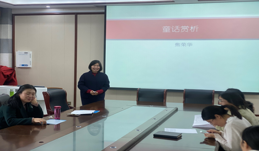 最后,学前教育专业焦荣华老师进行了儿童文学示范课,采用童话赏析的形式,通过一则安徒生童话带给听课老师思考、联想和创新的启迪。讲课过程热情,有感染力,语言表达清楚,重点突出,思路清楚。最后大家就这则童话的定义展开了一系列的扩展与讨论。